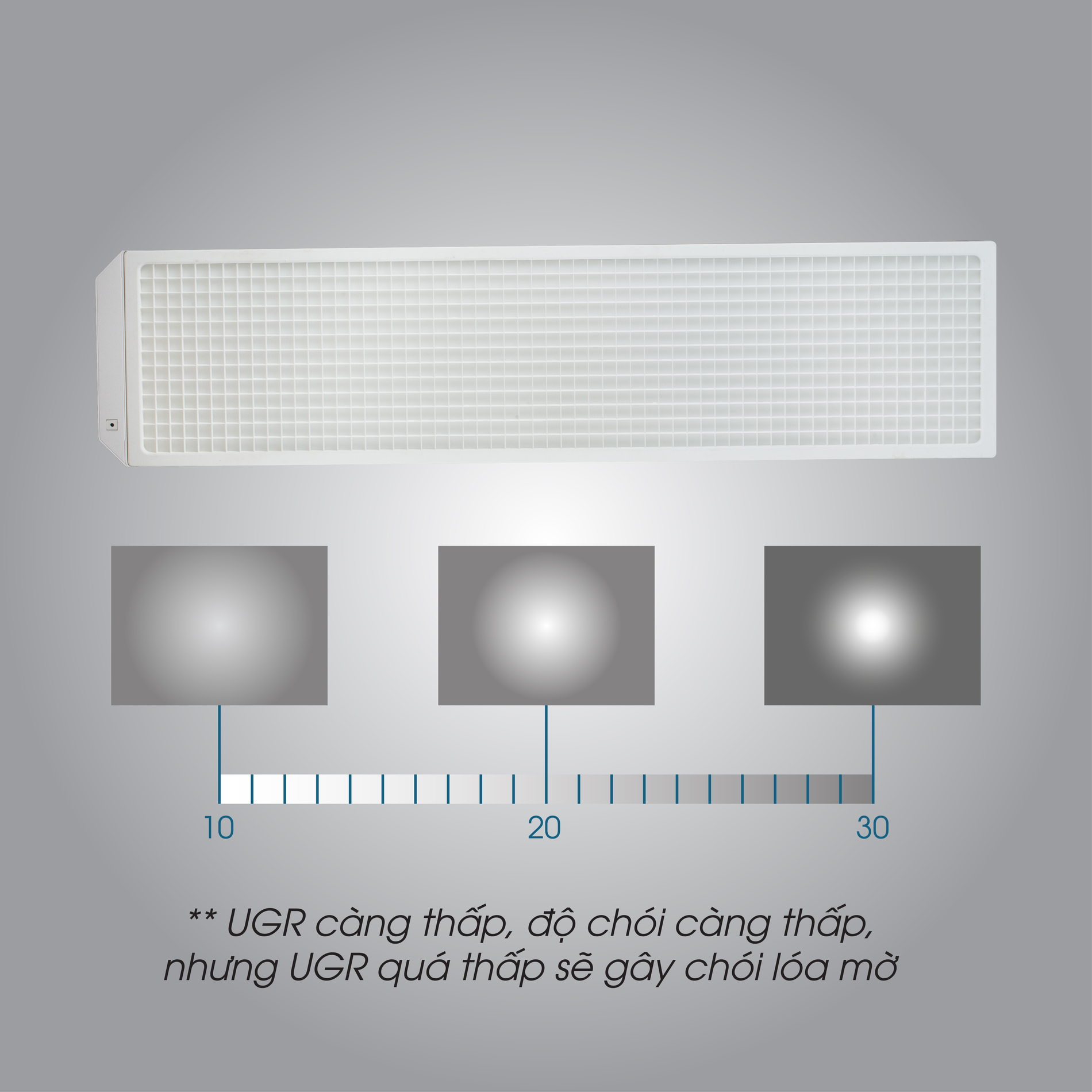 • UGR ≤ 16: Chỉ số chống chói lóa xuất sắc, giảm tỷ lệ cận thị học đường.