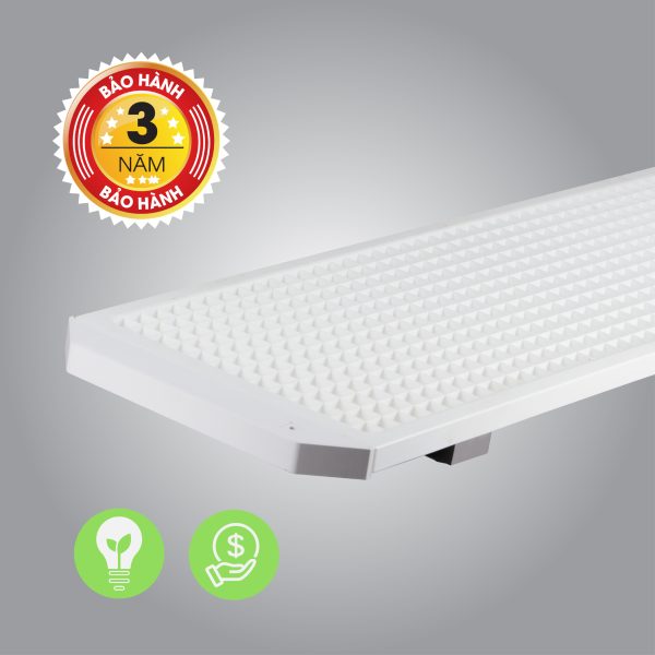 Cấu tạo nguồn sáng nằm sâu, góc mở hợp lý giúp phân bố ánh sáng đồng đều. Khi lắp đặt đúng cách (kết hợp cần treo) sẽ khắc phục triệt để hiện tượng sấp bóngloáng quạt, giúp học sinh không bị mỏi mắt, mất tập trung.
